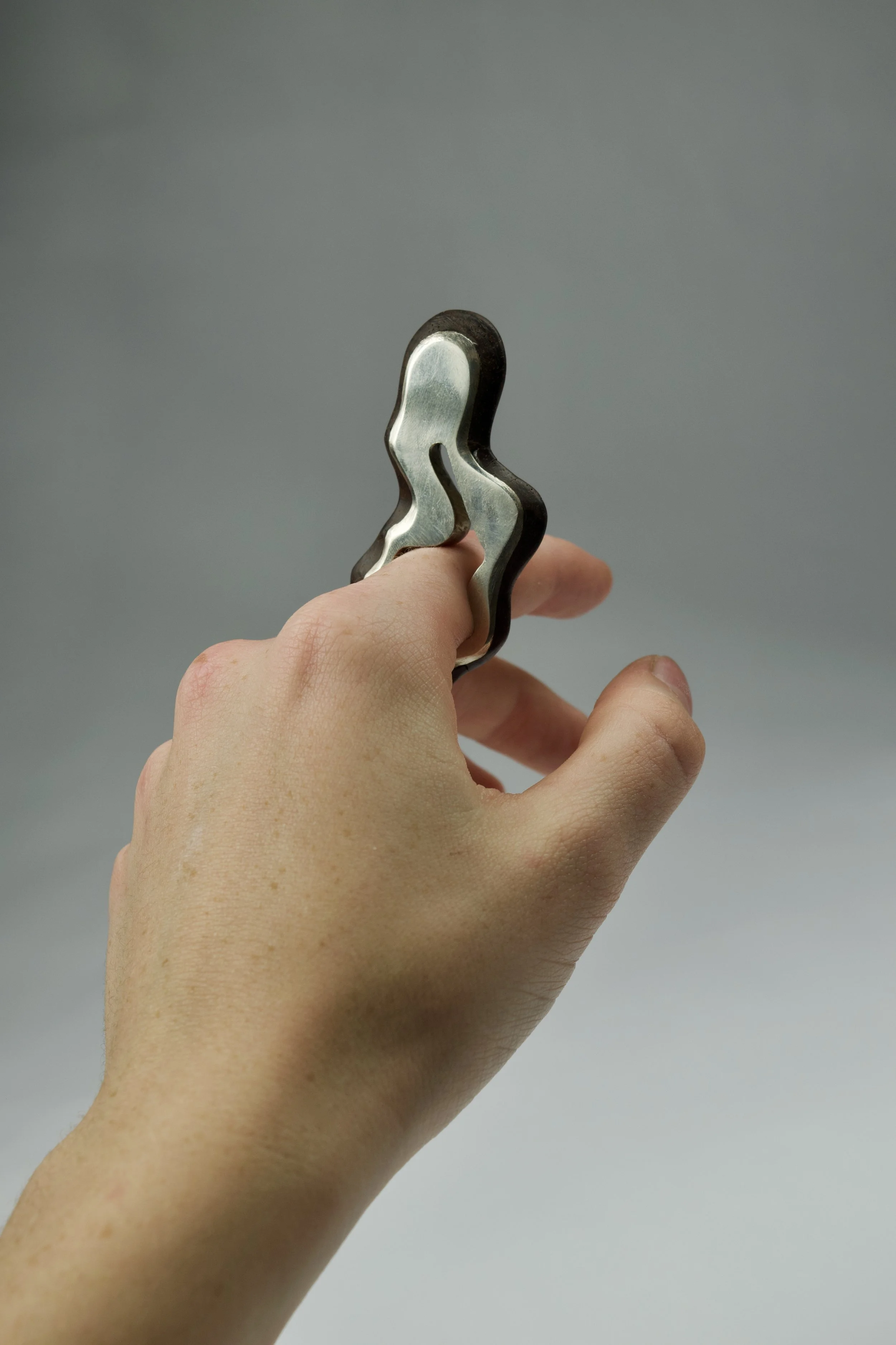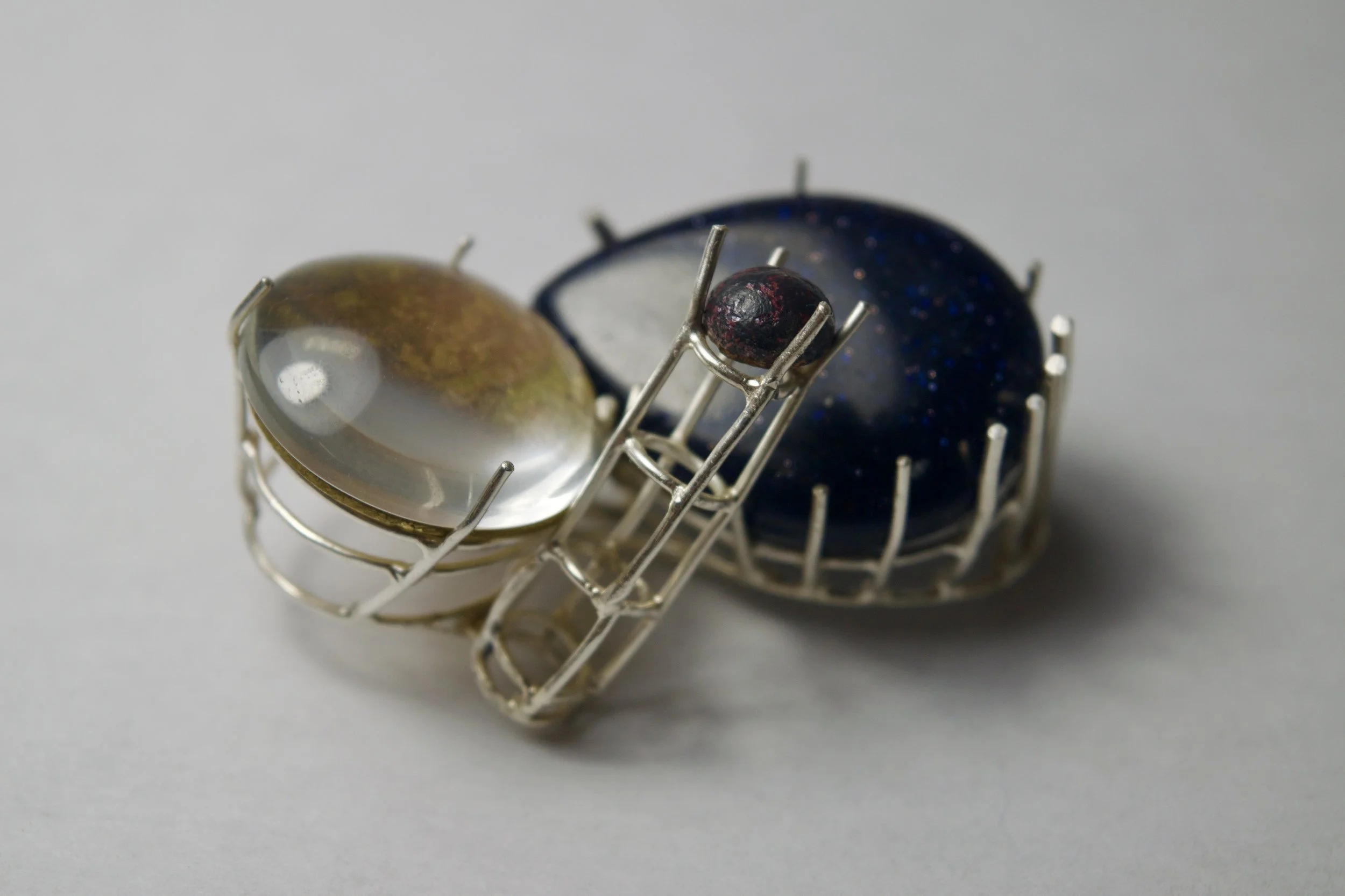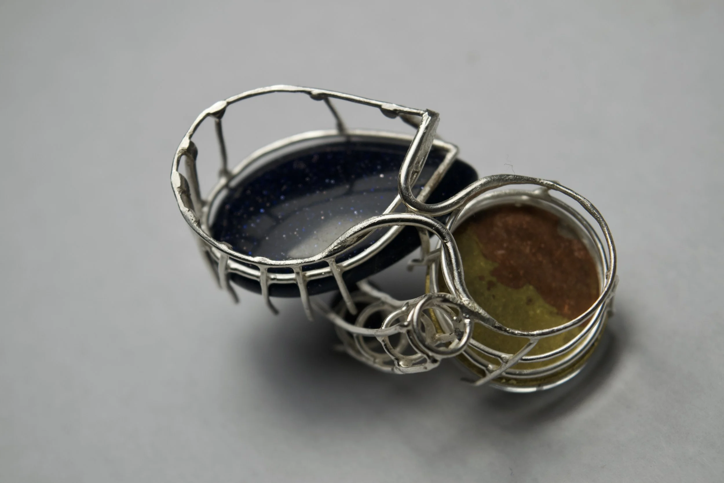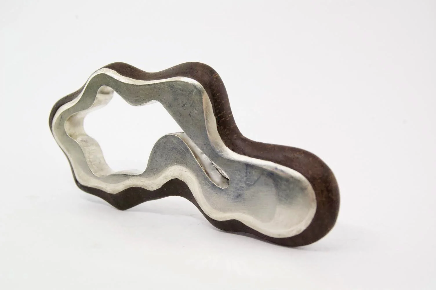 SILVER INSET WITH ROSEWOOD HOLLOW RING DESIGN ARCHITECTURAL BASKET SETTING