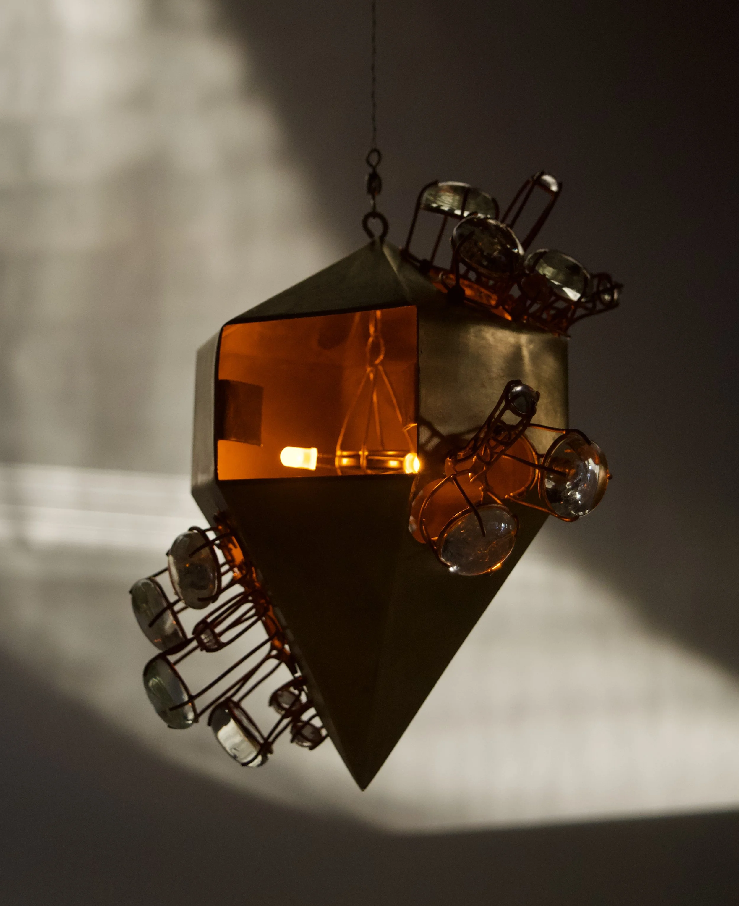A lantern made utilizing fine jewelry techniques.